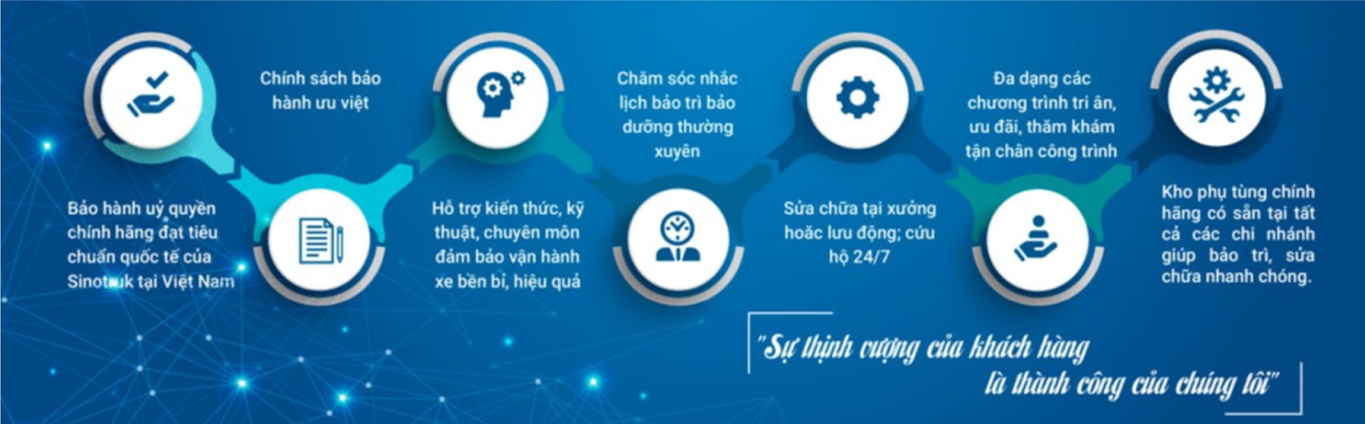 • Bảo hành ủy quyền chính hãng đạt tiêu chuẩn quốc tế SINOTRUCK tại Việt Nam