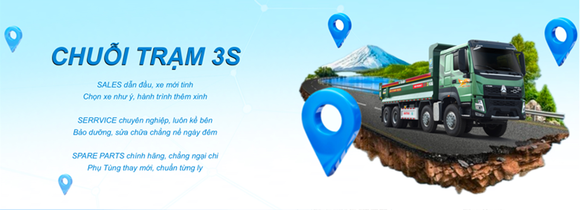 Các trạm dịch vụ 3S được trang bị máy móc và công nghệ tiên tiến, cung cấp đầy đủ các dịch vụ sửa chữa, bảo trì, và hỗ trợ lưu động, đảm bảo xe của bạn luôn vận hành ổn định trên mọi tuyến đường.
