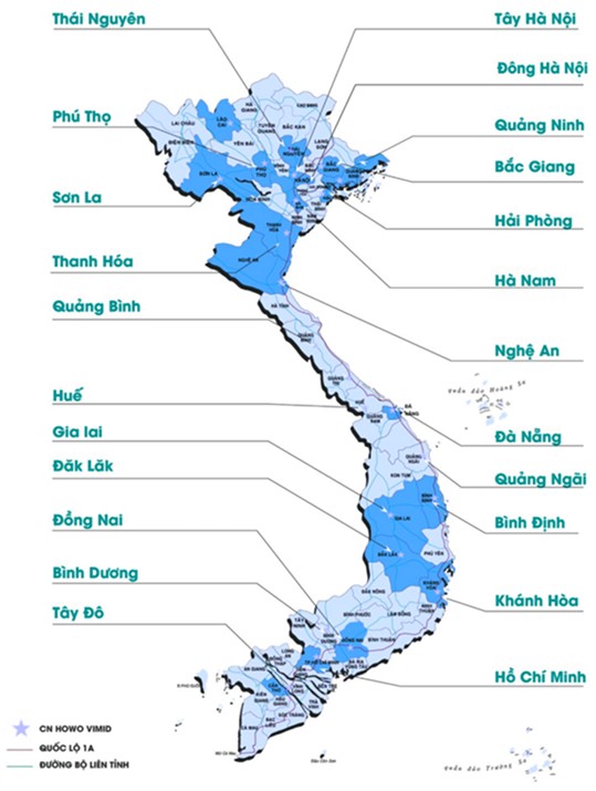 Với mục tiêu phủ sóng hệ thống chuỗi trạm đạt chuẩn 3S trên toàn quốc, hiện nay thương hiệu VIMID đã hiện diện với 22 chuỗi trạm và đại lý ủy quyền tại Việt Nam. Hệ thống chuỗi trạm dịch vụ đạt chuẩn 3S của VIMID không chỉ đảm bảo cung cấp các dịch vụ bảo dưỡng, sửa chữa và bảo hành chất lượng cao, mà còn cam kết đáp ứng các tiêu chuẩn về an toàn, hiệu quả và chuyên nghiệp.