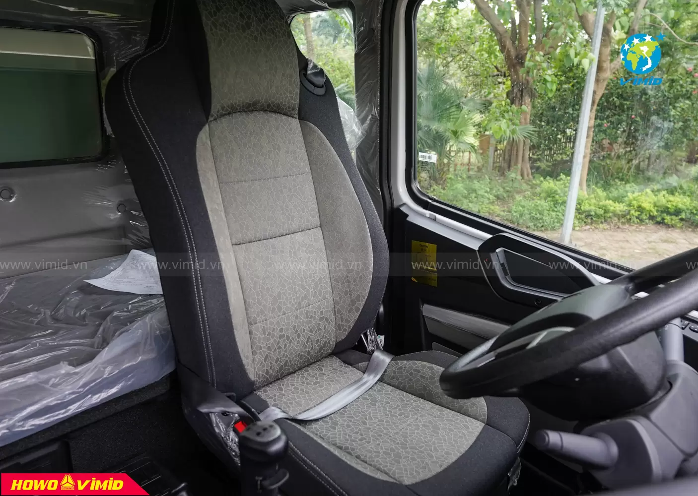 • High-back air suspension driver seat with lumbar support air cushions for spinal comfort.
