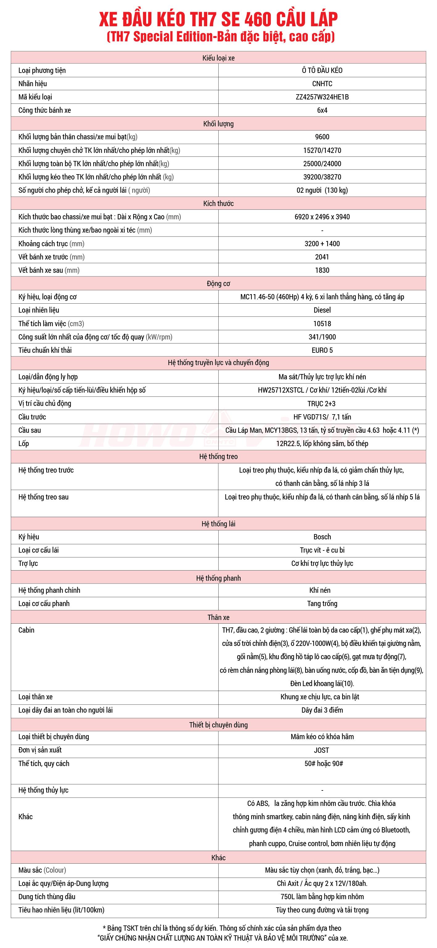 • Fifth Wheel: JOST – German standard, capable of handling hundreds of tons of load.