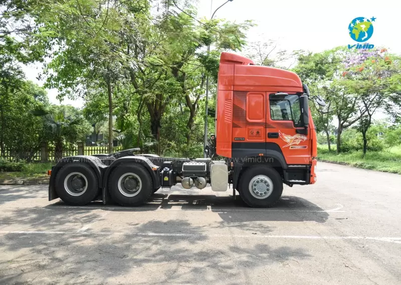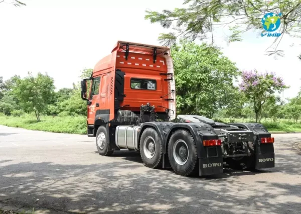 - The HOWO V7X 440HP Tractor – Hub reduction rear axles adopts a full air braking system with drum brakes and automatic brake shoe adjusters on both front and rear axles, ensuring consistent braking performance and reducing maintenance effort.