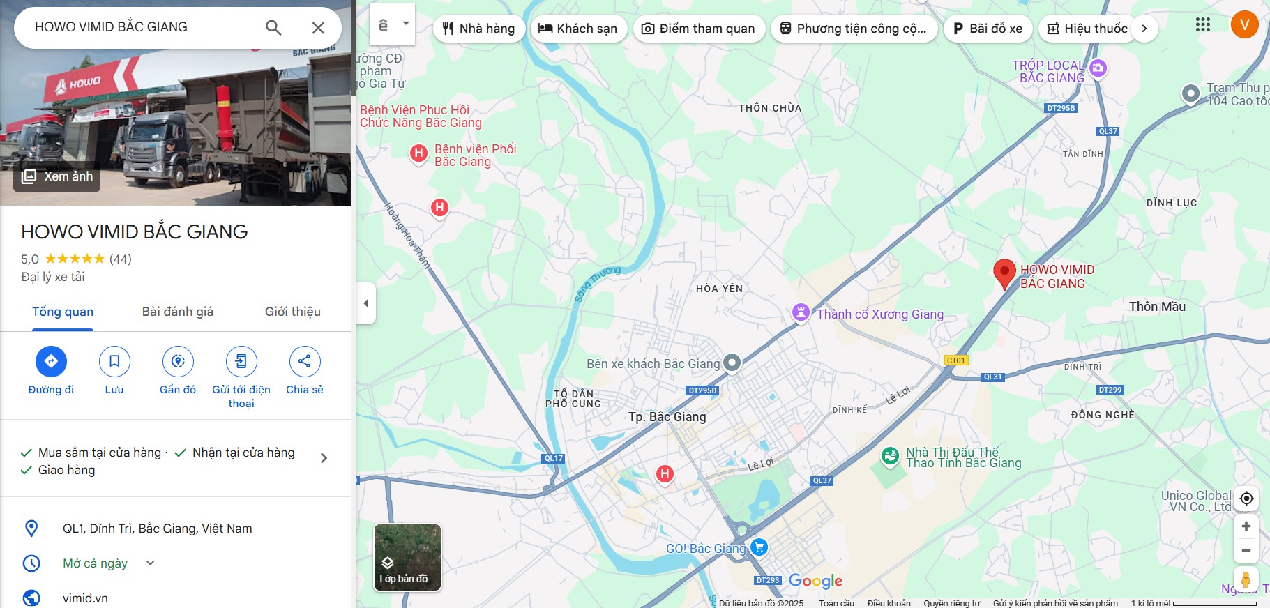 Howo Vimid Bắc Giang là lựa chọn hàng đầu cho các bạn đang tìm kiếm xe tải HOWO chất lượng cao và dịch vụ bảo dưỡng chuyên nghiệp. Với vị trí chiến lược, hệ thống trạm 3S hiện đại, đội ngũ kỹ thuật viên tận tâm và các chương trình ưu đãi hấp dẫn, VIMID cam kết đồng hành cùng các bạn trên mọi hành trình vận tải. Hãy liên hệ ngay qua hotline 1900.1089 hoặc ghé thăm chi nhánh tại QL1, Thôn Riễu, Xã Dĩnh Trì, TP. Bắc Giang để trải nghiệm dịch vụ vượt trội và sở hữu xe tải HOWO phù hợp nhất. Đừng bỏ lỡ các chương trình ưu đãi đặc biệt – theo dõi fanpage của VIMID để cập nhật thông tin mới nhất!
