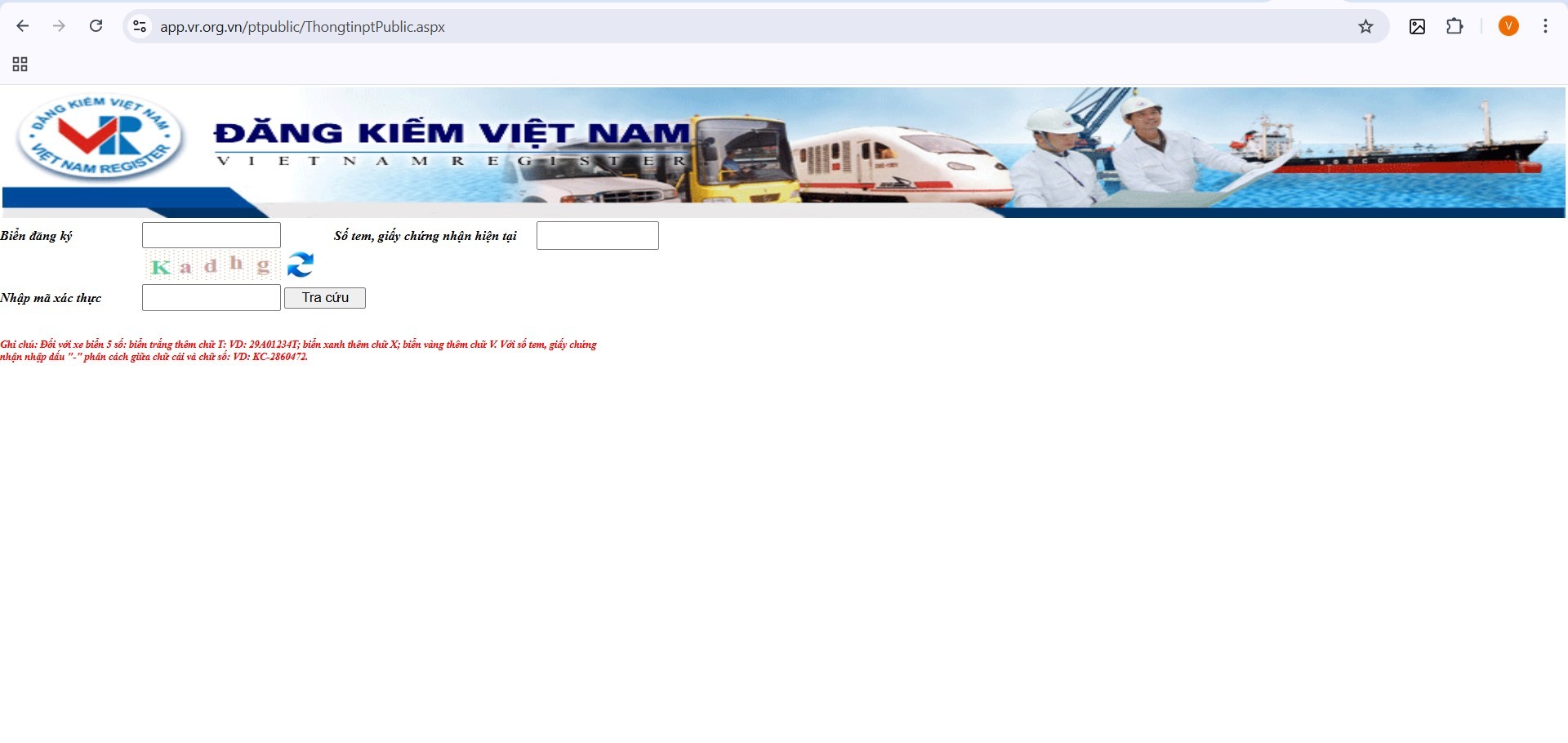• Nhập đúng định dạng biển số: Đặc biệt chú ý khi tra cứu trên trang Đăng kiểm (thêm T, X, V).