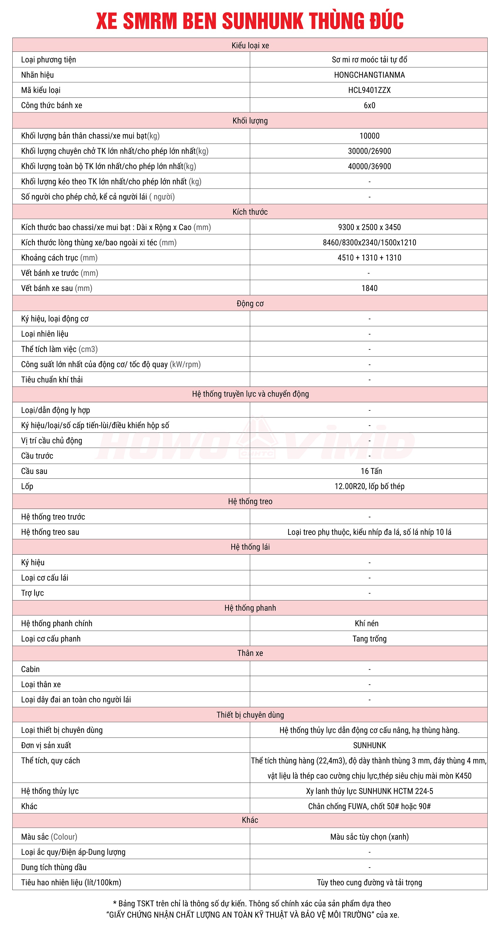 1.Sản phẩm sơ mi ben tự đổ được sản xuất bởi tập đoàn SUNHUNK, thương hiệu hàng đầu thế giới về sản xuất xe trộn, xe téc và các loại móc, xe chuyên dụng.