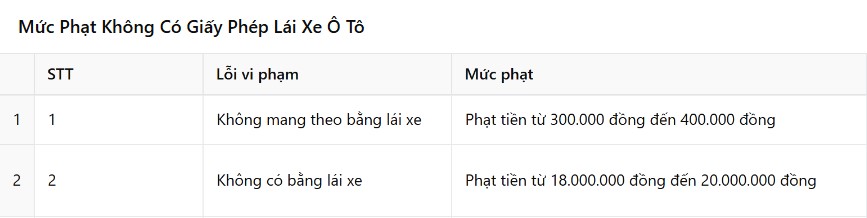 Điều này có nghĩa là nếu bạn lái xe ô tô mà không có bằng lái xe hợp lệ hoặc sử dụng bằng lái đã hết hiệu lực, bị tẩy xóa, hoặc không do cơ quan có thẩm quyền cấp, mức phạt có thể rất cao và ảnh hưởng lớn đến tài chính của bạn. Do đó, việc sở hữu và sử dụng một giấy phép lái xe hợp lệ là điều kiện bắt buộc khi tham gia giao thông.