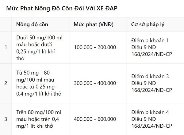 Năm 2025, xe đạp cũng bị xử phạt nếu người điều khiển có nồng độ cồn: