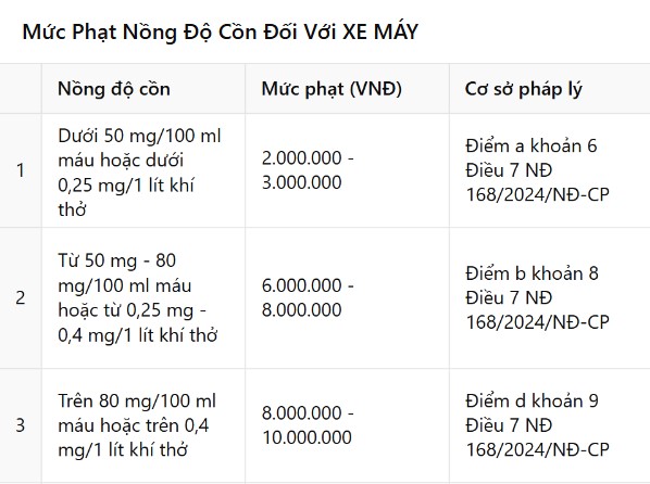 Đối với xe máy, mức phạt cũng được chia thành 3 mức: