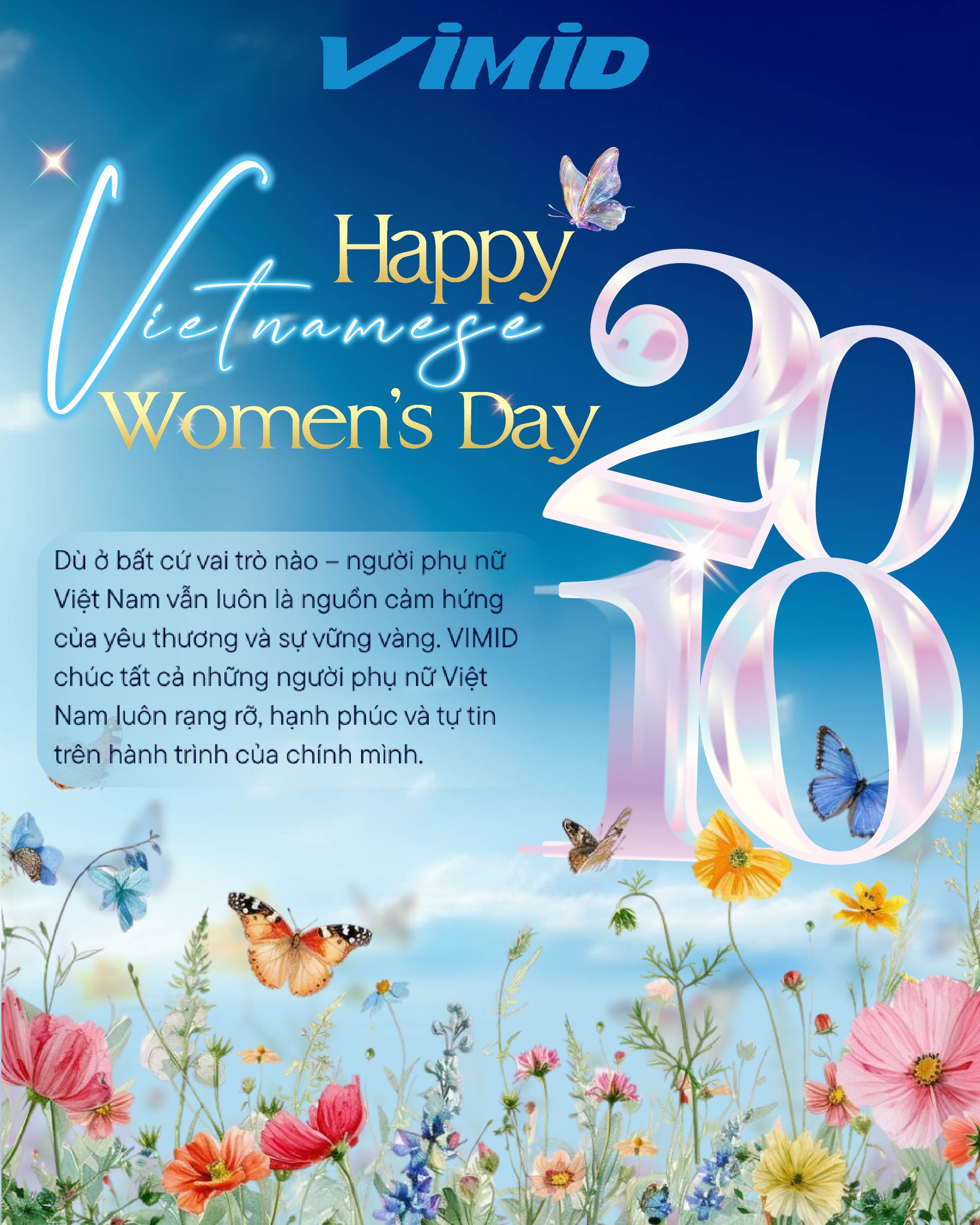 Nhân ngày đặc biệt này, VIMID xin kính chúc toàn thể phái đẹp luôn mạnh mẽ, tự tin, hạnh phúc và tỏa sáng, để mỗi ngày trôi qua đều là một hành trình ý nghĩa, và để những giá trị tốt đẹp từ người phụ nữ Việt Nam mãi lan tỏa trong cuộc sống và công việc.