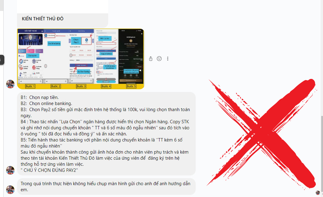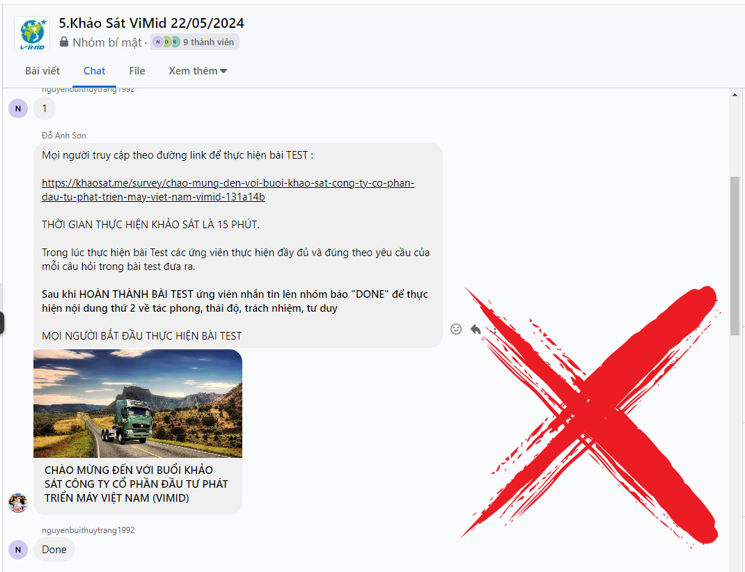 Hoặc lập nick giả mạo chuyên viên tuyển dụng của VIMID và đề nghị ứng viên vào group zalo, telegram, Workplace, Work Chat… sau đó dẫn dắt, hướng dẫn tải app/nhấn vào đường link/bình chọn ảnh/trải nghiệm và đánh giá sản phẩm/tham gia dự án/thực hiện nhiệm vụ hoặc làm bài kiểm tra kiến thức, cung cấp số tài khoản và yêu cầu ứng viên nạp tiền vào các dự án an sinh xã hội hay tham gia các nhiệm vụ dưới hình thức khác nhau nhằm kêu gọi ứng viên nạp tiền và chiếm đoạt.