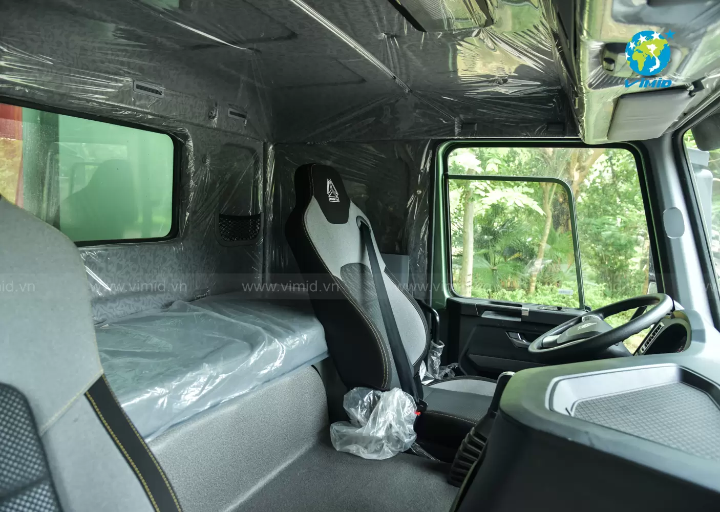 Xe ben V7-X là sự kết hợp đỉnh cao giữa 3 thương hiệu lớn hàng đầu thế giới: VOLVO, MAN và SINOTRUK. Cabin đầu thấp 1 giường nằm thiết kế đẹp mắt, được chế tạo theo tiêu chuẩn công nghệ MAN – ĐỨC cho các đường nét chế tạo tinh xảo, cứng rắn, an toàn trong quá trình vận hành.