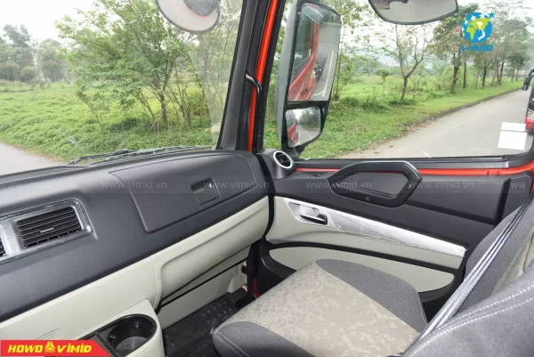 Không gian rộng vừa đủ, với tông màu nội thất xám vàng sang trọng, có đẩy đủ các chức năng trên những đầu kéo hiện đại như: phanh cup pô, ga tự động Cruise control, chìa khóa thông minh Smartkey, chỉnh gương hậu 4 chiều và sấy gương; màn hình LCD cảm ứng có wifi, bluetooth, có cổng USB; cabin nâng điện, điều hòa Auto, cài cầu, cài cứng; công tắc đèn Auto, trang bị ghế hơi,…