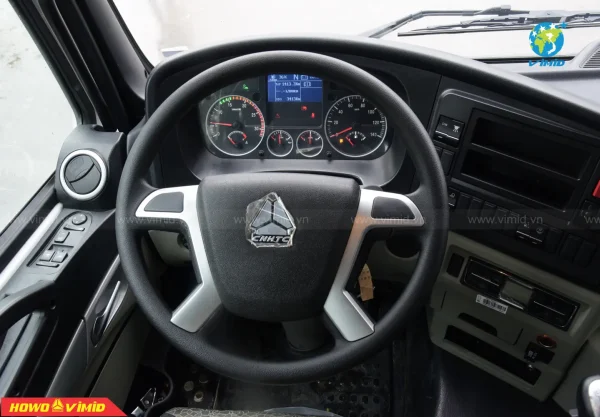 Vô lăng mang phong cách hiện đại cùng kiểu dáng thế thao, với điểm nhấn nổi bật là phần logo CNHTC sáng bóng đặt ở giữa. Tay gạt Bên phải vô lăng: có công tắc phanh Cup pô, tăng chỉnh ga tự động Cruise Coltrol. Tay gạt Bên trái vô lăng: công tắc còi hơi, công tắc nháy pha, gạt mưa.