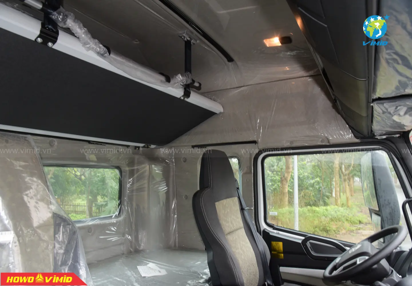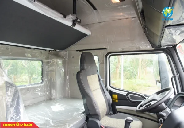 Không gian rộng vừa đủ, với tông màu nội thất xám vàng sang trọng, có đẩy đủ các chức năng trên những đầu kéo hiện đại như: phanh cup pô, ga tự động Cruise control, chìa khóa thông minh Smartkey, chỉnh gương hậu 4 chiều và sấy gương; màn hình LCD cảm ứng có wifi, bluetooth, có cổng USB; cabin nâng điện, điều hòa Auto, cài cầu, cài cứng; công tắc đèn Auto, trang bị ghế hơi,…