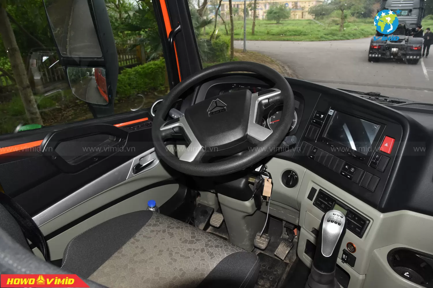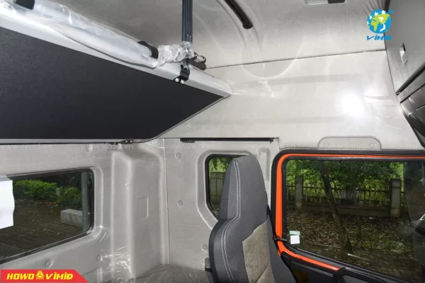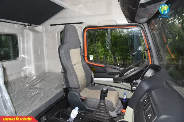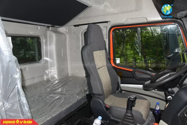 Không gian rộng vừa đủ, với tông màu nội thất xám vàng sang trọng, có đẩy đủ các chức năng trên những đầu kéo hiện đại như: phanh cup pô, ga tự động Cruise control, ổ điện 220V, chìa khóa thông minh Smartkey, chỉnh gương hậu 4 chiều và sấy gương; màn hình LCD cảm ứng có wifi, bluetooth, có cổng USB; cabin nâng điện, điều hòa Auto, cài cầu, cài cứng; công tắc đèn Auto, trang bị ghế hơi,…