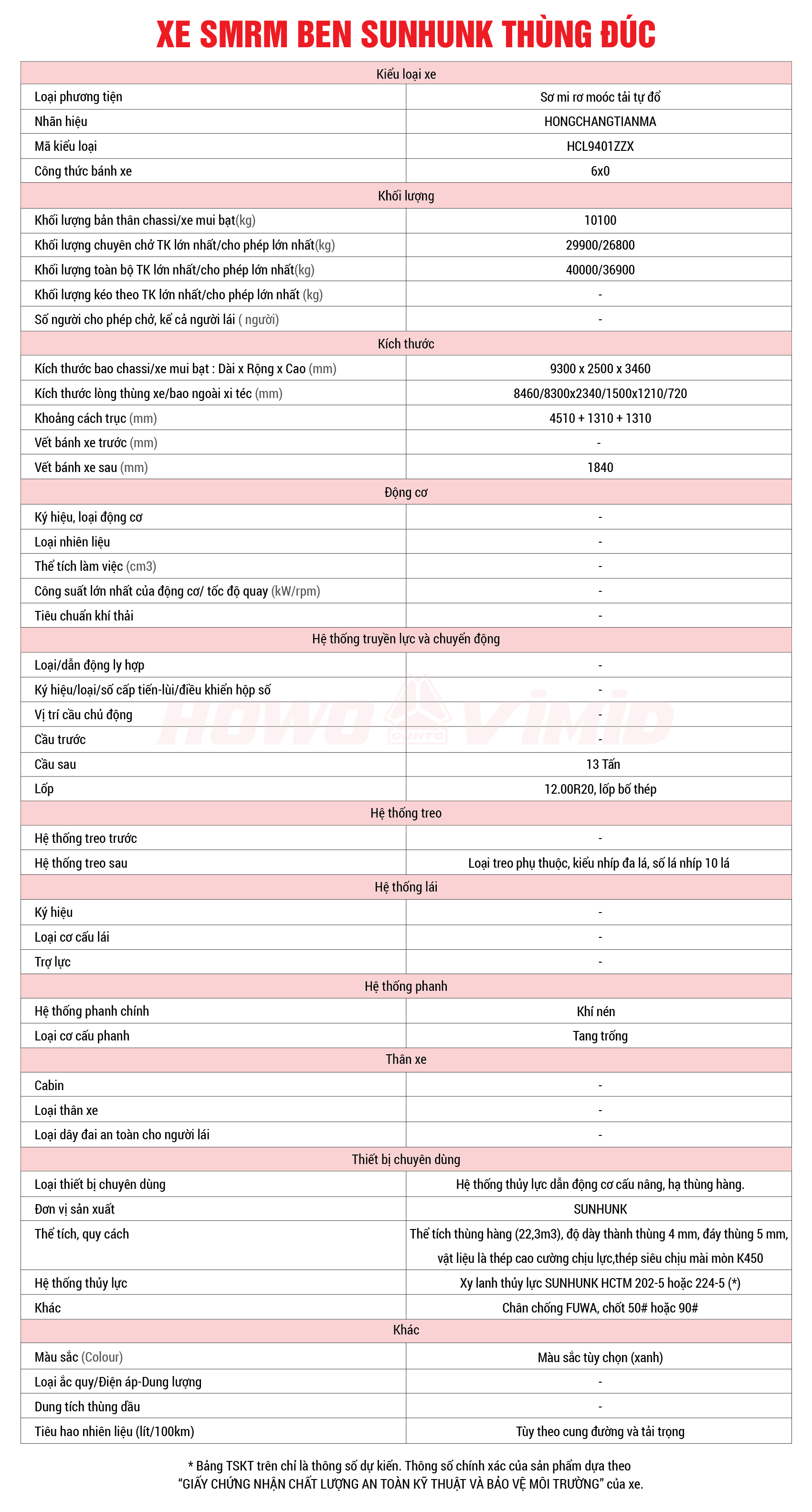 - Tháp ben sử dụng loại xylanh ben đồng bộ SUNHUNK 224-5 với đường kính lớn ty ben lên đến 224mm lớn nhất thị trường, với khả năng ben tối đa lên đến trên 100 tấn, cỡ lốp 00R20 loại bố thép tăng khả năng chịu tải.