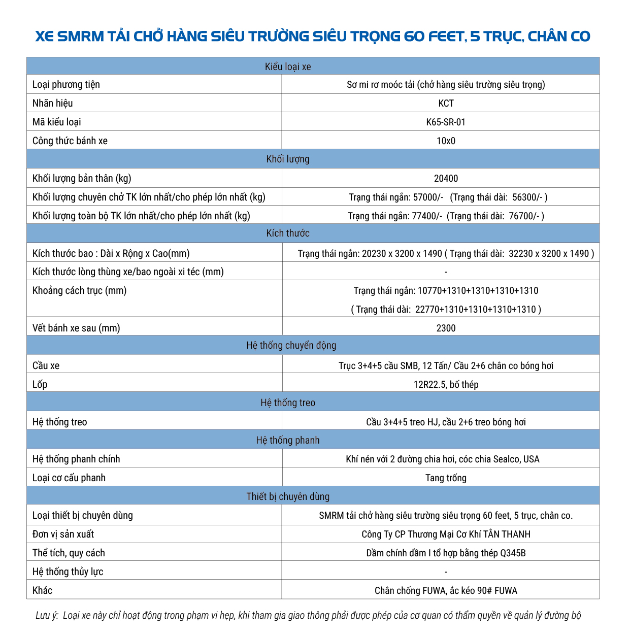 Loại thiết bị chuyên dùng: SMRM tải chở hàng siêu trường siêu trọng 60 feet, 5 trục, chân co