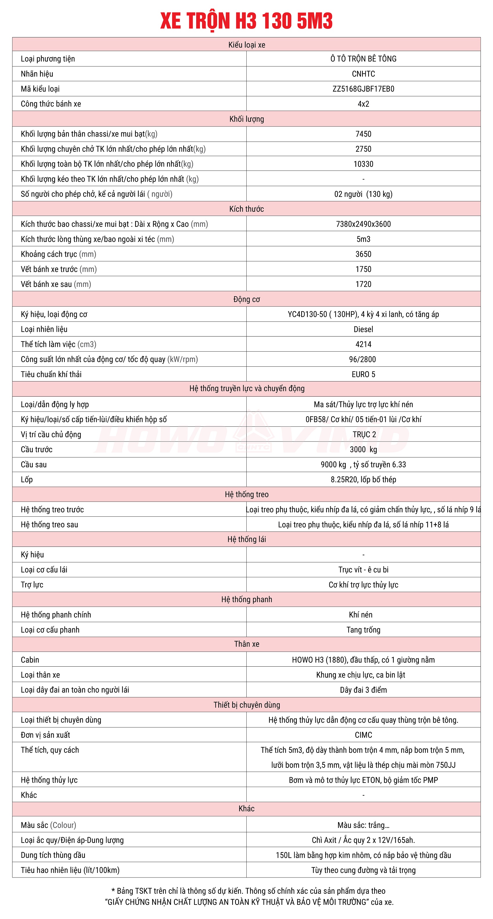 Xe trộn H3 130 5m3 là sản phẩm mới nhất từ tập đoàn SINOTRUK, dòng xe trộn bê tông được VIMID nhập khẩu nguyên chiếc 100% và phân phối tại thị trường Việt Nam.